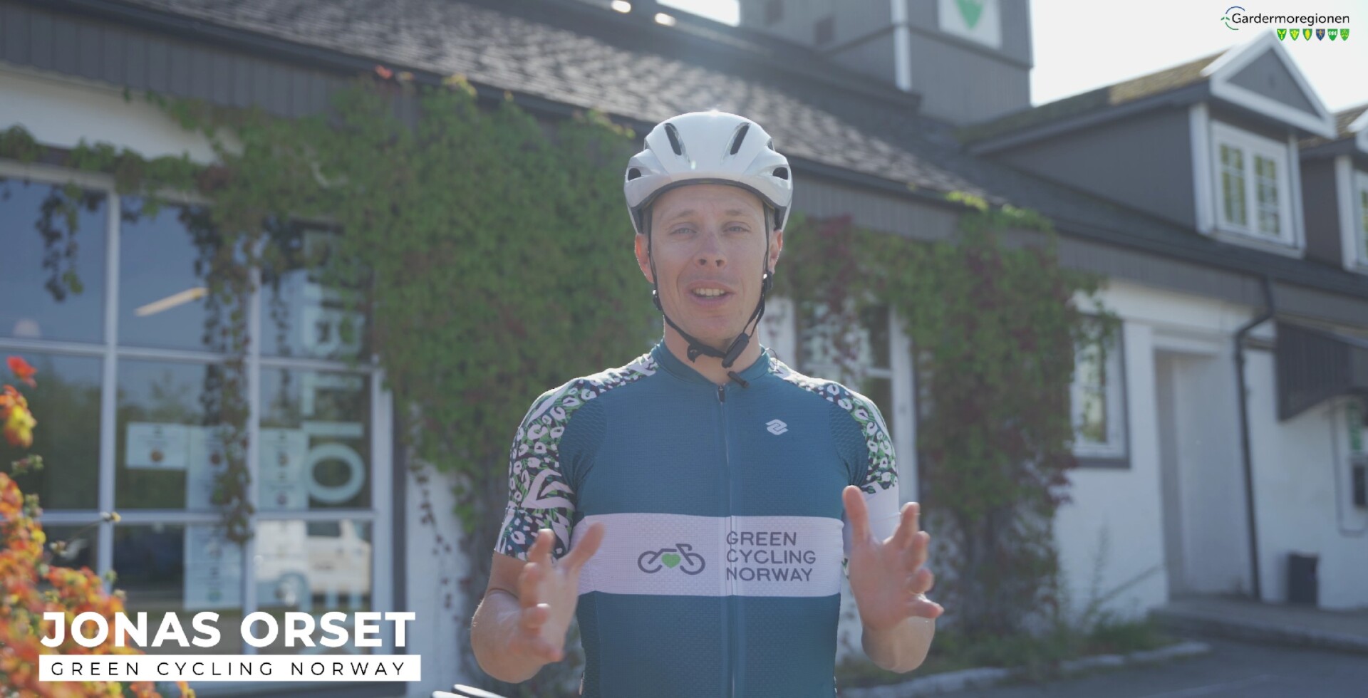 SYKKELRUTE I GJERDRUM: Jonas Orset fra Green Cycling Nordic Norway (NGO) viser sykkelrute i Gjerdrum. Kilde: Youtube