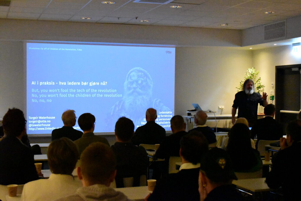 Spørsmålet satte tonen for resten av arrangementet. Waterhouse var tydelig på at kunstig intelligens representerer en av de største omstillingene vi står midt i, og at norske virksomheter må øke tempoet dersom de skal henge med i utviklingen.